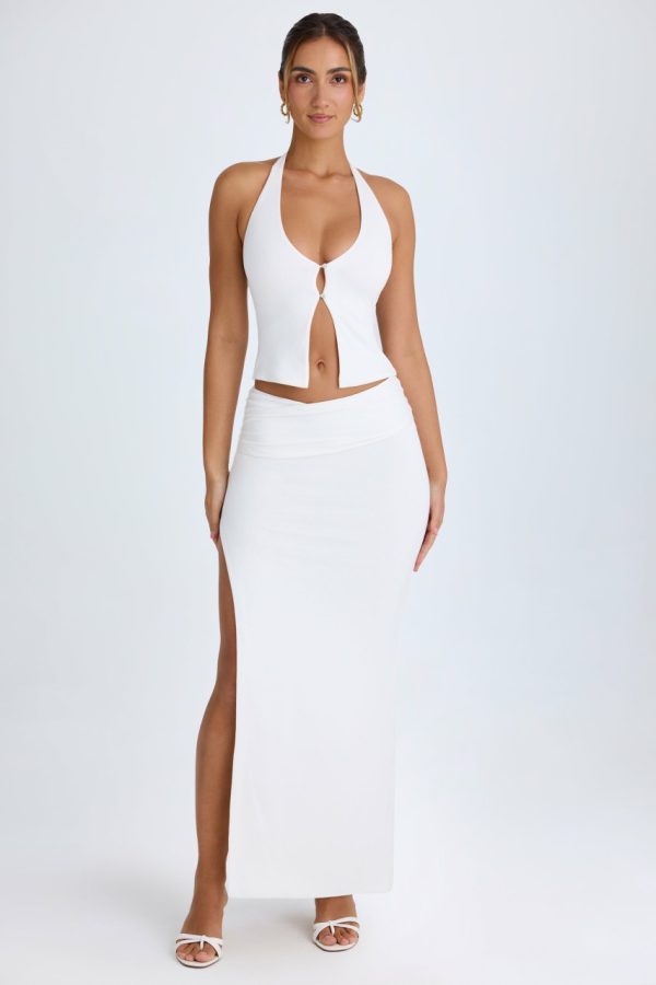 Oh Polly Adena Fishtail Maxi Skirt with Gemstone Hardware & Ruching