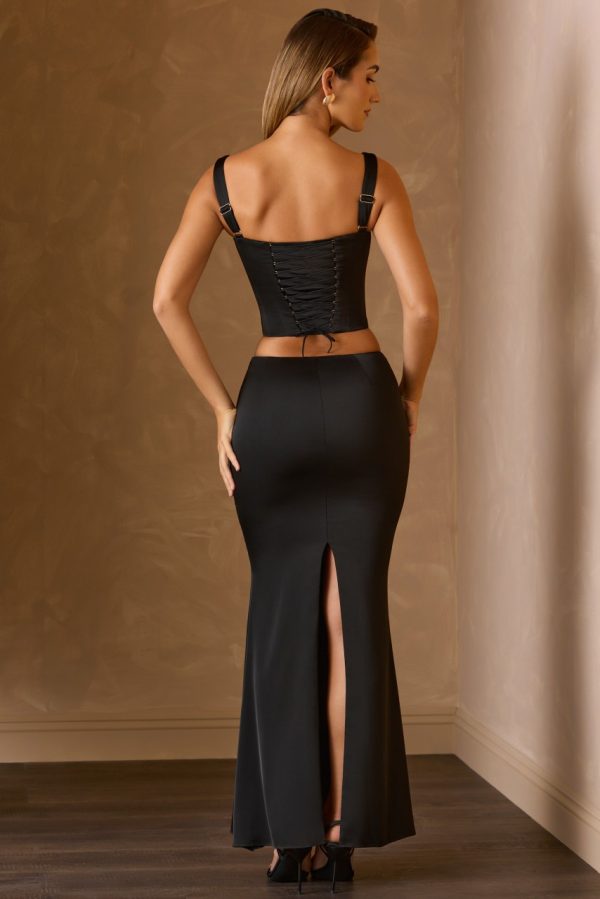 Oh Polly Adena Fishtail Maxi Skirt with Gemstone Hardware & Ruching