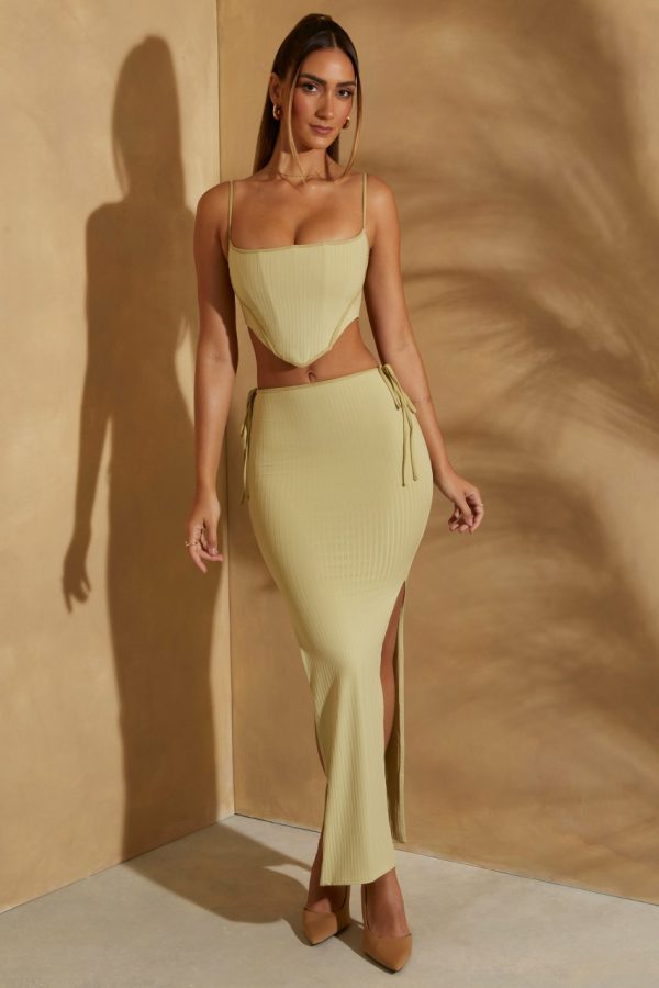 Oh Polly Dakoa Ribbed Modal Maxi Skirt with Side Slits & Tie Waist