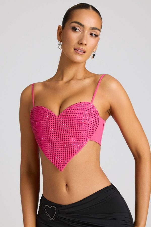 Oh Polly Syrene Sparkling Heart Crop Top with Corset Back