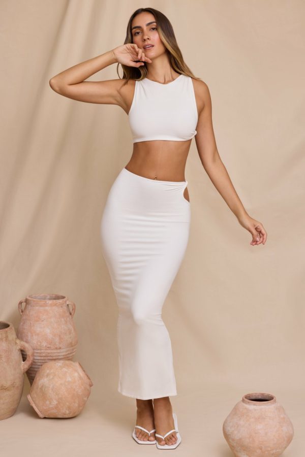 Oh Polly Women’s Carilla Maxi Skirt with Twist Detail – Stretchy Modal Fabric, Bodycon Fit
