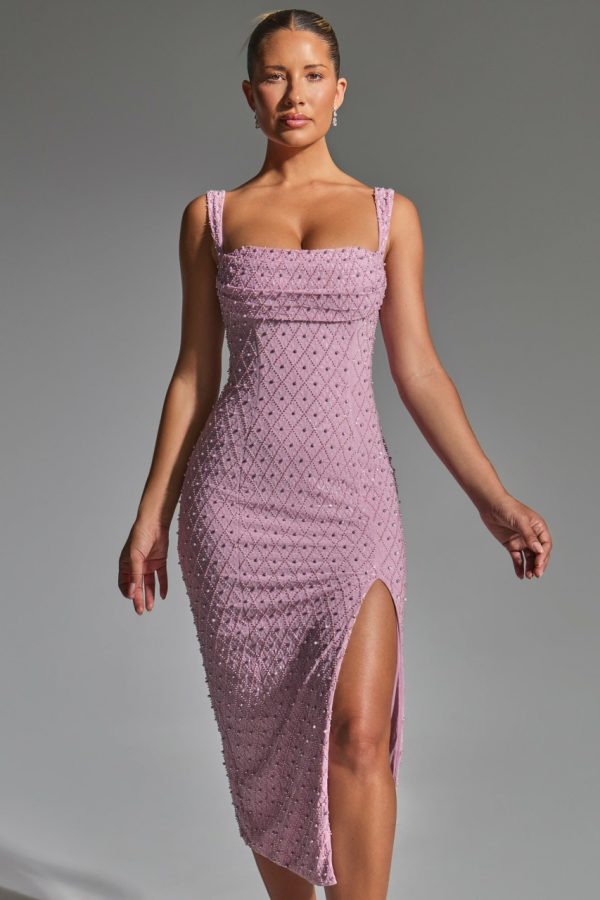 Oh Polly Women’s Crystal Embellished Cowl Neck Bodycon Dress