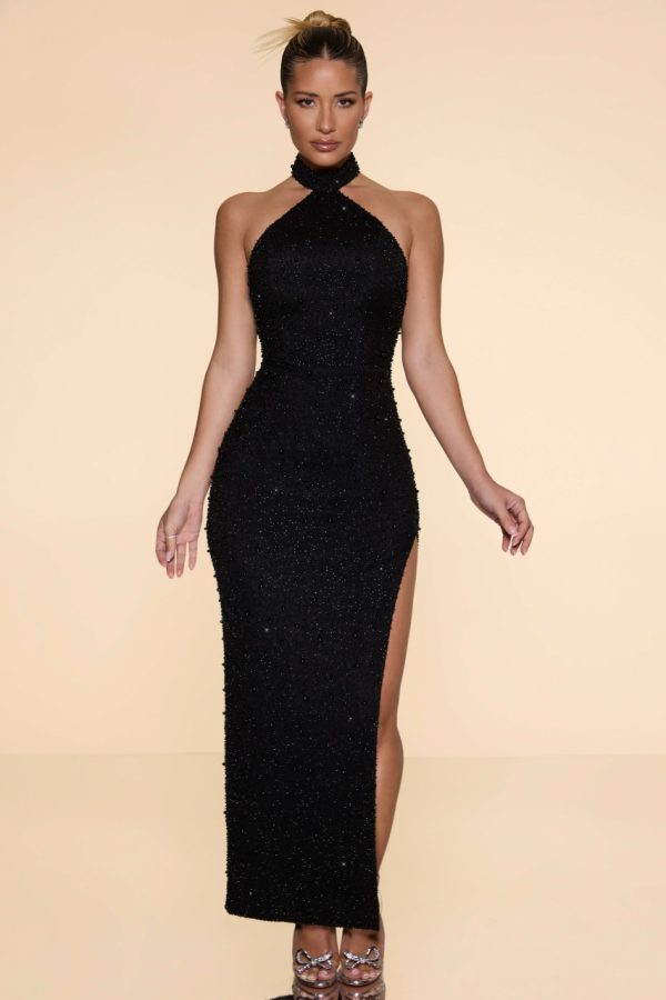Oh Polly Women’s Embellished Provence Maxi Dress with Seeded Beading & Cut-Out Back