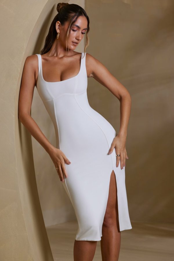 Oh Polly Women’s Maxi Bodycon Dress with Back Slit & Adjustable Straps