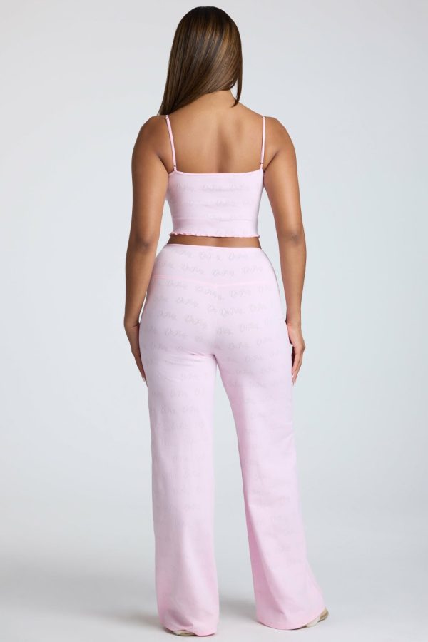 Oh Polly Women’s Pointelle Lounge Pants with Lettuce Hem & Branded Detail