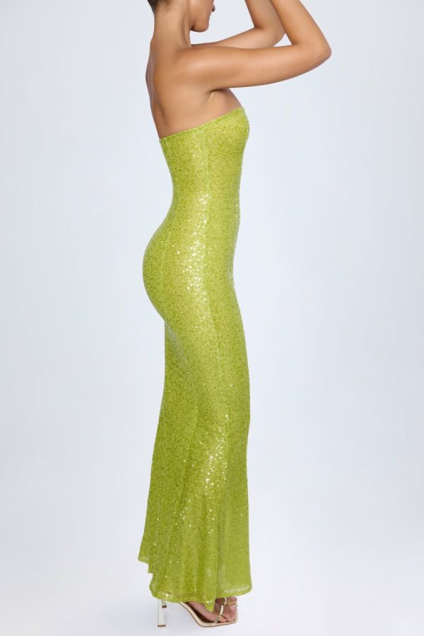 Oh Polly Women’s Sequin Embellished Crochet Maxi Dress with Fishtail Silhouette