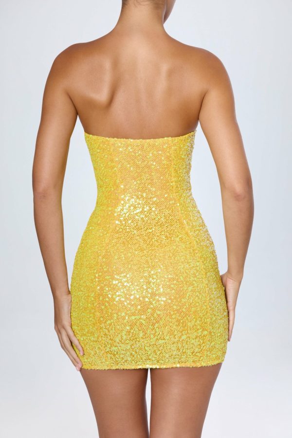 Oh Polly Women’s Sequin Embellished Crochet Mini Dress – Bandeau Bodycon