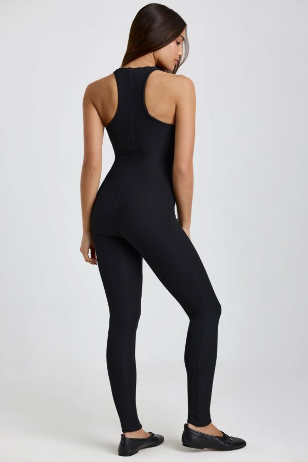 Oh Polly Women’s TENCEL™ Modal Ribbed Jumpsuit – Square Neck Bodycon Jumpsuit with Long Sleeves