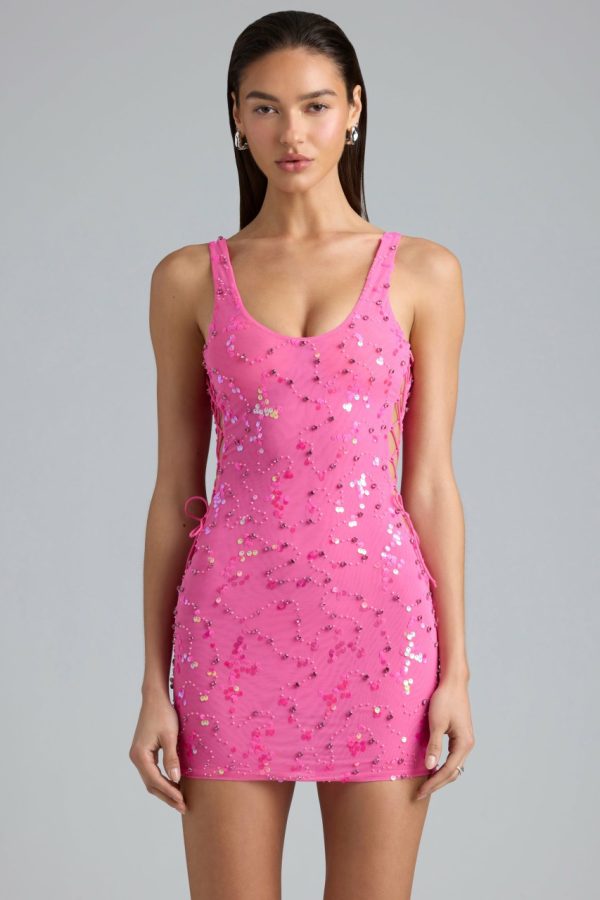 Oh Polly Yasmin Embellished Mini Dress with Cut-Outs & Crystal Details