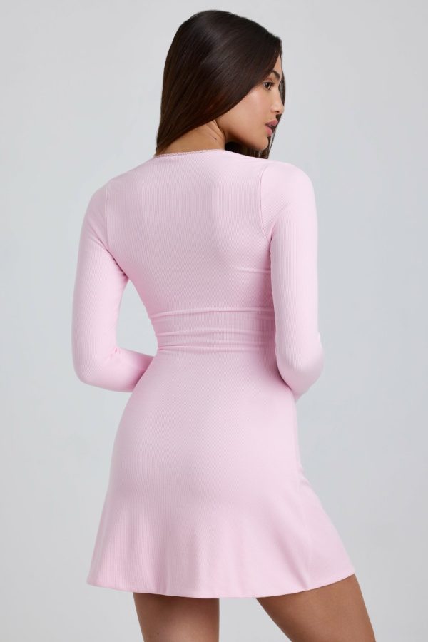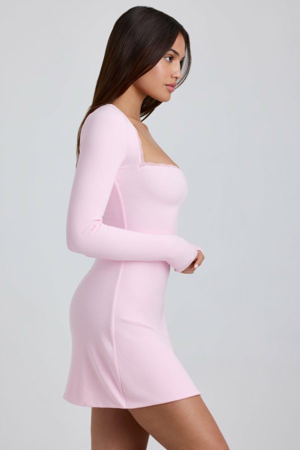 Oh Polly Women’s Tencel™ Modal Lila Mini Dress with Lace Trim | Sustainable Stretch-Ribbed Bodycon