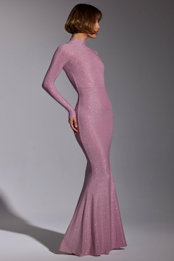 Oh Polly Yasmin Rhinestone Mesh Maxi Dress with Back Cutout