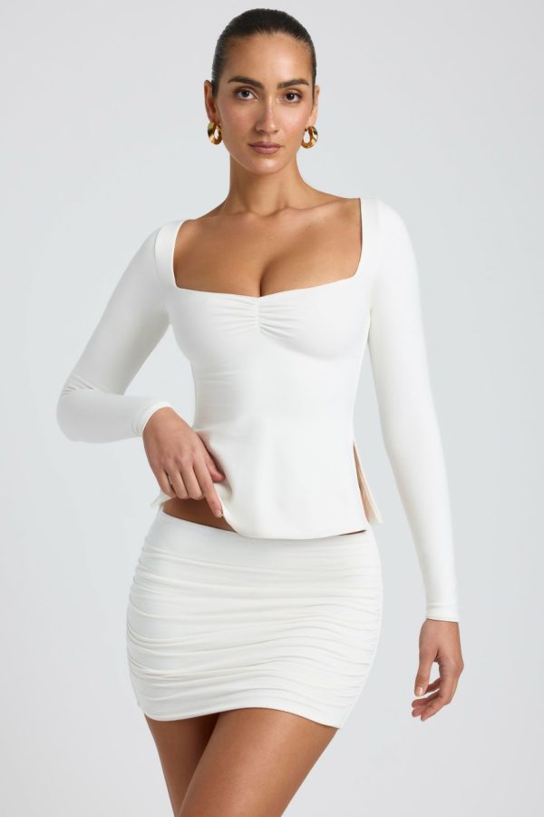 Chic everyday staples. Crafted from dual-layered, buttery soft jersey made with TENCEL™ Modal fibres and rendered in three versatile neutral hues, the Fiora top is a capsule wardrobe essential. It’s spliced with two side splits for a universally flattering fit and framed with a subtly ruched sweetheart neckline.