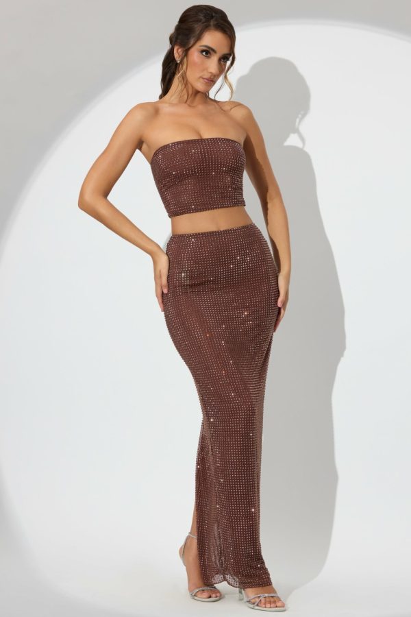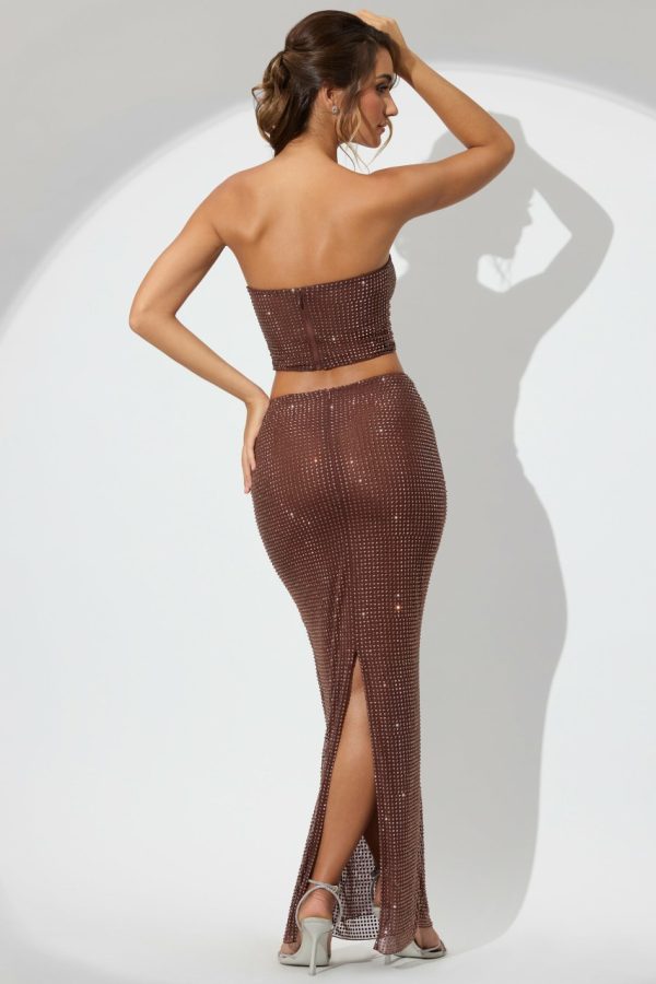 Special moments call for elevated designs. Crafted by a team of in-house ateliers, the Fausta maxi skirt is cut from premium dual-layered mesh fabric with all-over, glittering hotfix embellishment. A mid-rise design with a narrow split that allows for ease of movement, Fausta is a timeless piece perfect for parties and special occasions.