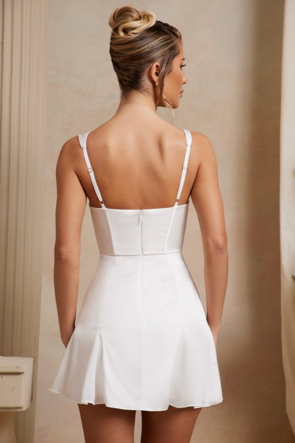 A must have style for creating a romantic look this party season, Delphine has everything you need to stand out from the crowd. Designed in our premium matte satin fabric, Delphine features a low, angled neckline that exposes the underwired cups that complete the flattering built in corset. Designed to create a fun and flirty silhouette, Delphine is complete with a curve skimming a line skirt with delicate pleat detailing. Perfect for creating the ultimate festive party look, we know you’ll be loving Delphine this season.