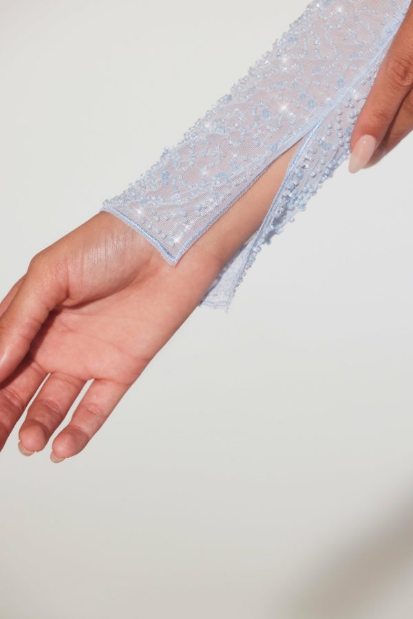 Dual layered mesh fabric with fully seeded embellishment throughout (Shell: 84% Polyester, 16% Elastane, Lining: 95% Polyester, 5% Elastane). Fully lined. Please read the wash instructions.