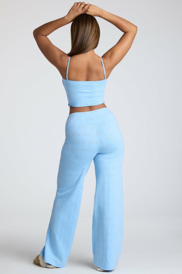 You’ll never want to take off our fun and flattering Loungewear. Designed in our lightweight and stretchy pointelle jersey fabric, the Loungewear trousers feature Oh Polly embossed branding throughout. A loose-fit essential for lazy days, Loungewear is complete with a flattering mid-rise waistband, wide leg, and lettuce hem edging.