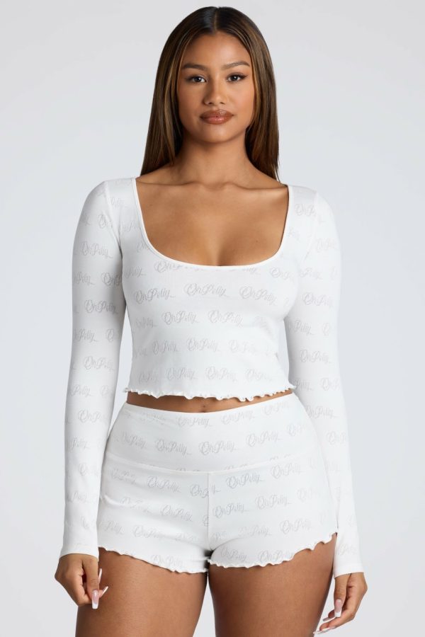 You’ll never want to take off our fun and flattering Loungewear. Cut from our lightweight and stretchy pointelle jersey fabric, the Loungewear mini shorts feature Oh Polly embossed branding throughout. Your go-to for cosy days at home, this snug wardrobe staple is complete with a mid-rise waistband and pretty lettuce hem edging.