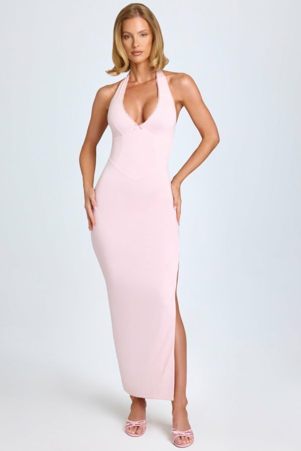 Made for sun-drenched plans. The perfect silhouette for all-day styling, the Elisana maxi dress is crafted from our buttery soft jersey fabric made with TENCEL™ Modal fibres, derived from controlled or certified wood sources. It’s cut to a figure-hugging halterneck silhouette and enhanced with a contouring V-shaped waist seam at the front. The sultry open back is anchored with a concealed hook-and-eye closure.